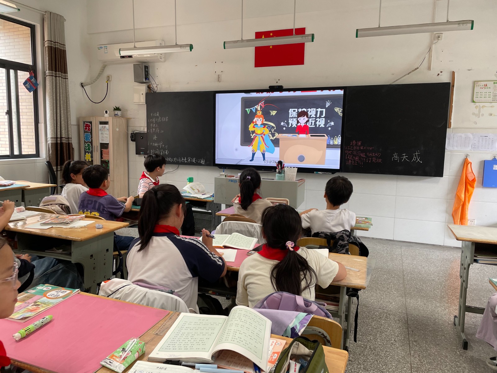 让专业的知识走进学生心里,是防控工作的核心环节。活动期间,我校校医焦老师走进四12班,为学生们带来了一堂堂生动有趣的“防近”健康教育课。课程通过形象直观的图片、有趣的动画和互动问答等形式,向学生们讲解了眼睛的构造、近视的危害以及“一拳一尺一寸”的正确读写姿势、眼保健操的规范做法等实用知识。课堂上学生们踊跃参与,在轻松愉快的氛围中深刻认识到保护视力的重要性,掌握了科学用眼的本领。