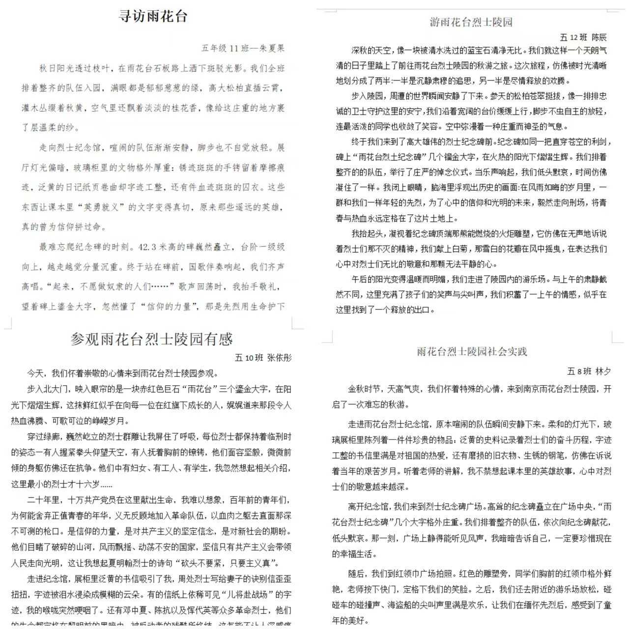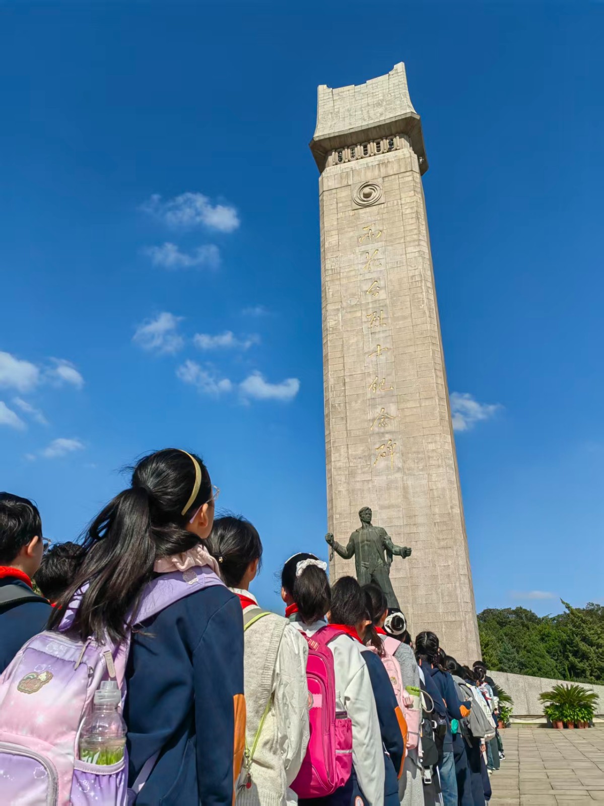 庄严肃穆的雨花台烈士陵园,迎来了五年级的师生。在巍峨的烈士纪念碑前,同学们肃立默哀、敬献白花,表达对革命先烈的无限哀思。跟随讲解员的叙述,恽代英、邓中夏等烈士的英雄事迹深深震撼着每一位同学的心灵。“如何向烈士学习”的承诺卡上,写满了孩子们的决心:“珍惜现在,努力学习,报效祖国!”红色精神在这一刻得到了最好的传承。