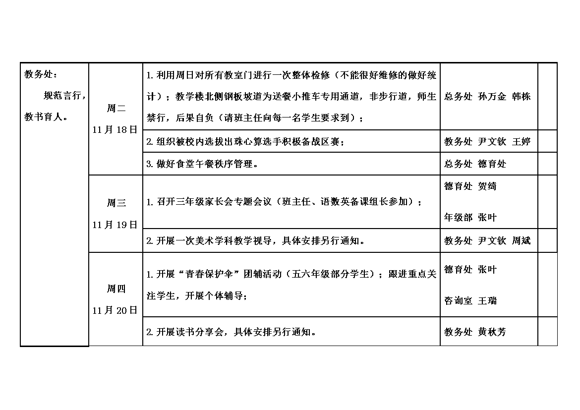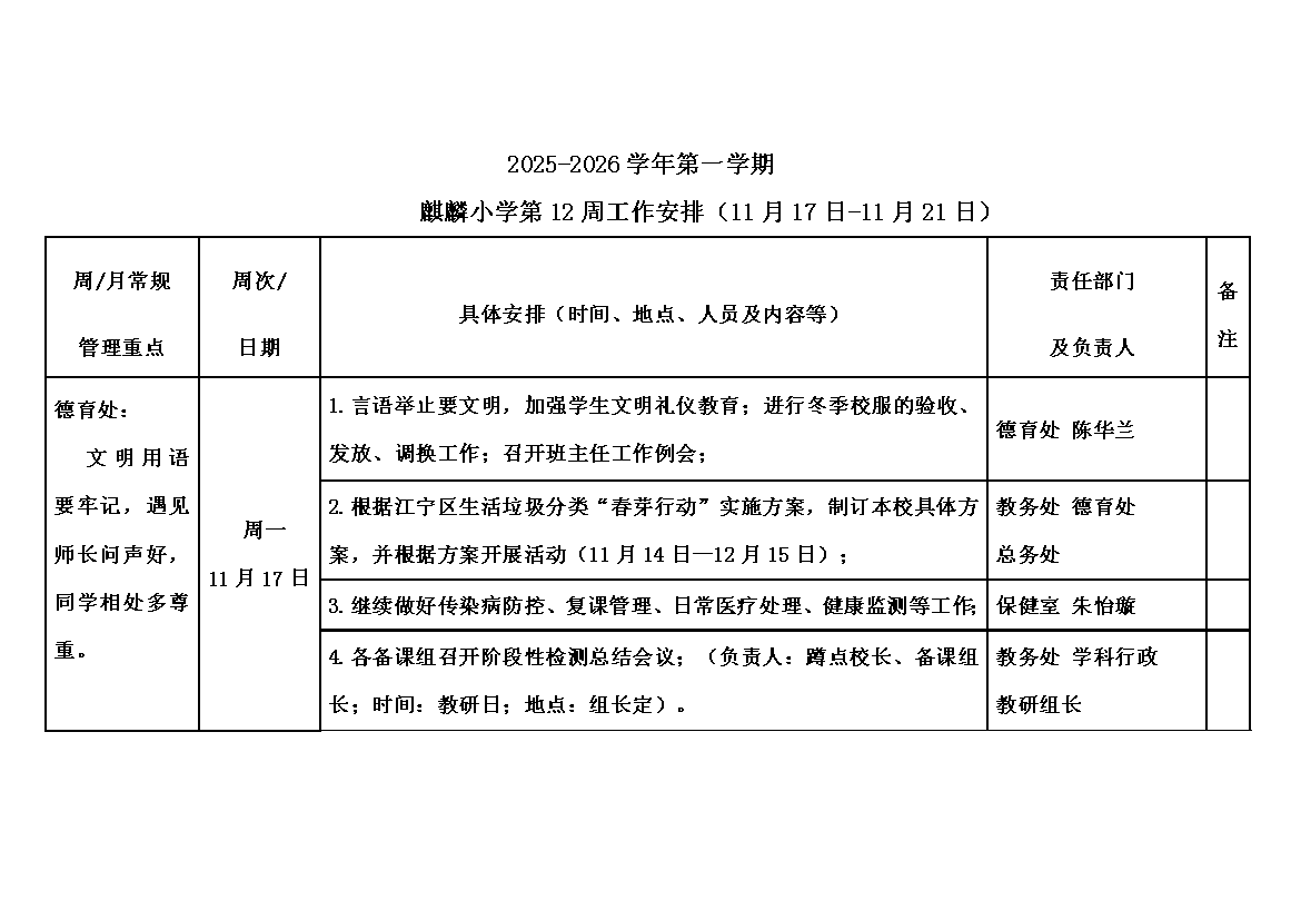 麒麟小学2025-2026学年第一学期第12周工作安排