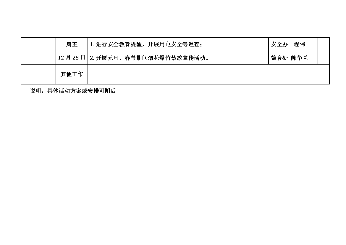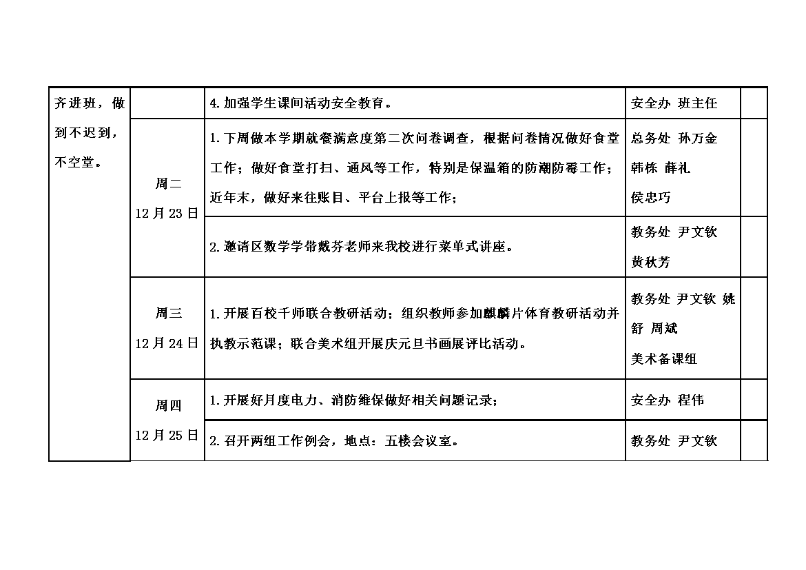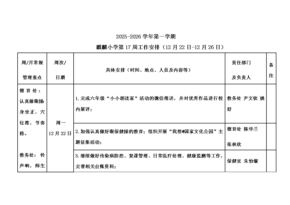 麒麟小学2025-2026学年第一学期第17周工作安排